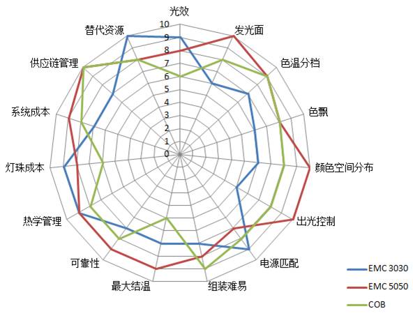 EMC高功率封裝LED產(chǎn)品結(jié)合產(chǎn)品穩(wěn)定性,高性價比及高性能,勢必將極大地改變目前的市場格局,COB產(chǎn)品是否仍是商業(yè)照明的最佳選擇,陶瓷封裝LED在戶外的領(lǐng)導(dǎo)地位是否還能保持,PPA、PCT材料封裝LED紅海競爭的行業(yè)格局是否會被打破或重組,這些問題預(yù)計(jì)都將在接下來的兩年內(nèi)揭曉。
