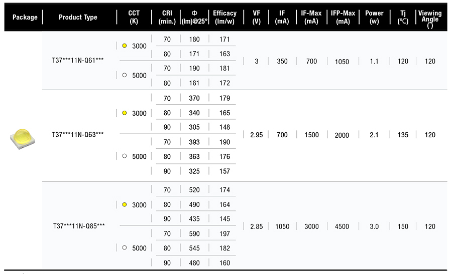 • 帶lens設(shè)計(jì),符合小角度&高中心光強(qiáng)設(shè)計(jì)需求