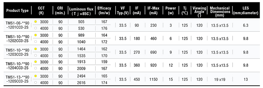• 極小發(fā)光面,可提供極高單位面積光密度