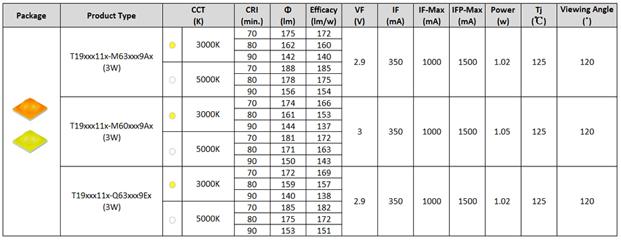 • High lumen output and high luminous efficiency