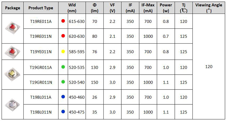 • High lumen output and high luminous efficiency