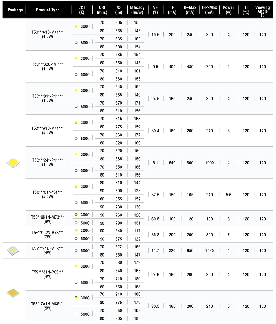 • 不同功率版本,單顆實(shí)現(xiàn)540-860流明光輸出
