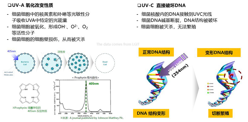 然而,UV-A 中的某一特定波段也具有殺菌消毒功能,這個波段在405nm附近,由于人眼可見,