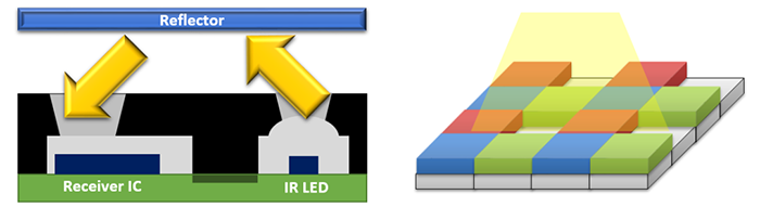 一般封裝分自帶紅外LED與外接兩種,而IC芯片可同時(shí)集成環(huán)境光感測(cè)區(qū)塊形成三合一模塊(IR/PS/ALS)。