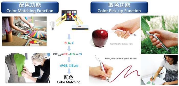 用來偵測(cè)目標(biāo)物的色彩與色溫,配合軟件調(diào)整應(yīng)用產(chǎn)品的色彩效果。