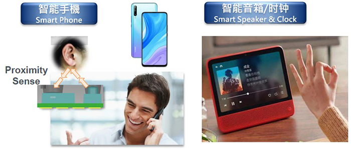 (1)接近式感應(yīng):典型如智能手機(jī)通話時(shí)偵測(cè)人臉接近時(shí)的自動(dòng)熄屏功能,進(jìn)階應(yīng)用如智能音箱的手勢(shì)感應(yīng)功能;