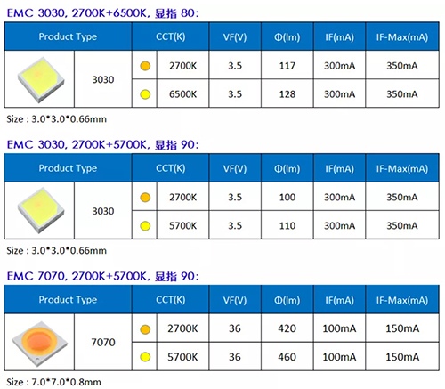 主流EMC3030 / EMC7070 (發(fā)光面:6.3mm)封裝體,兼容市場(chǎng)配套光學(xué),降低客戶智能升級(jí)成本;