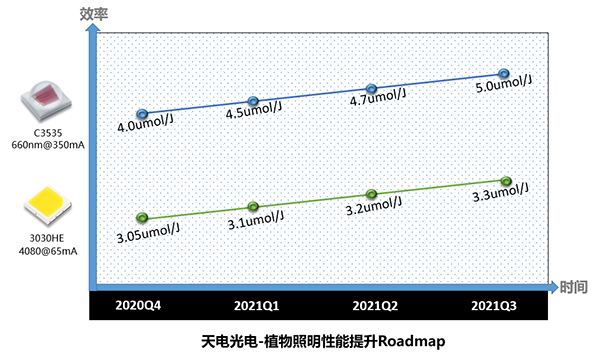 將已量產(chǎn)的陶3535-660nm產(chǎn)品,進(jìn)一步的將產(chǎn)品的性能提升至4.5umol/J@350mA,
