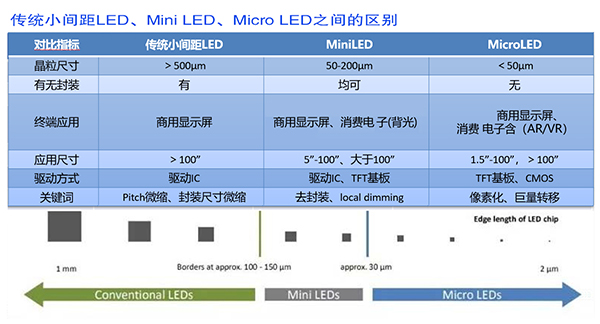 又名”次毫米發(fā)光二極管是指尺寸在100毫米量級(jí)的chip ,尺寸介于小間距LED與Mirco LED之間,
